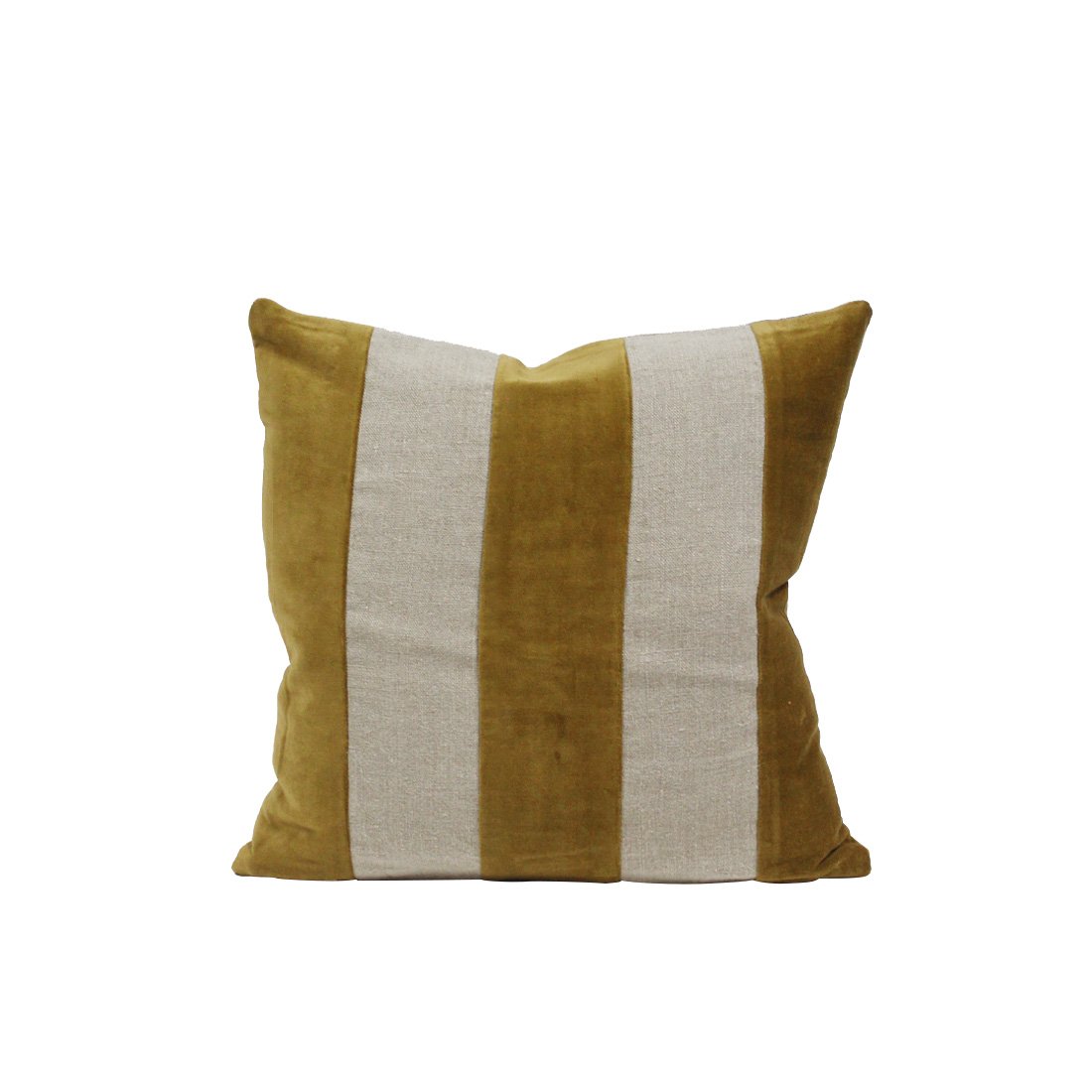 Add style and texture to your sofa with the new Brisbane cushion range from Hoamy. The Brisbane style features a vertical striped panels of cotton-velvet layered on a natural linen backing which breaks up the look of the velvet allowing it to feel visually lighter and more seasonally ambiguous. The combination of the natural linen allows for easier styling in amongst other linen cushions, perfect for those who love to mix and match colours and textures.