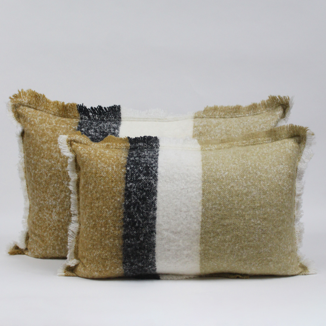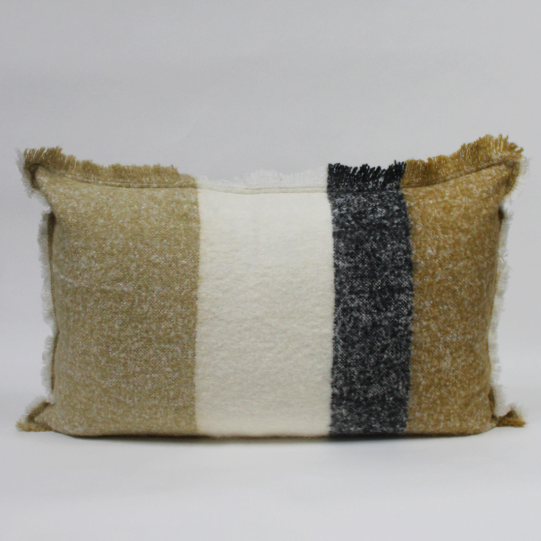 Style your home with texture and warmth with the new Calypso range from Hoamy. The wool blend cushions combine four complementary tones paired side by side to draw the eye up and visually lift the lumbar sized style. Finished with textural fringed edges, the Calypso design is the perfect way to add colour and texture to either a sofa or a bedroom.