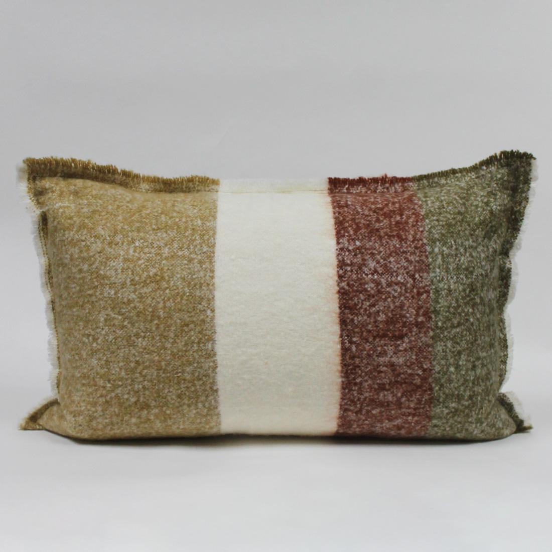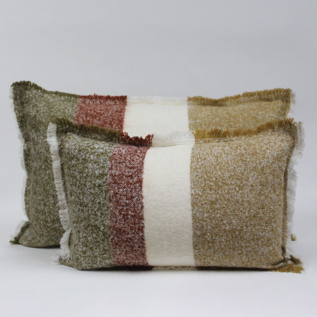 Style your home with texture and warmth with the new Calypso range from Hoamy. The wool blend cushions combine four complementary tones paired side by side to draw the eye up and visually lift the lumbar sized style. Finished with textural fringed edges, the Calypso design is the perfect way to add colour and texture to either a sofa or a bedroom.
