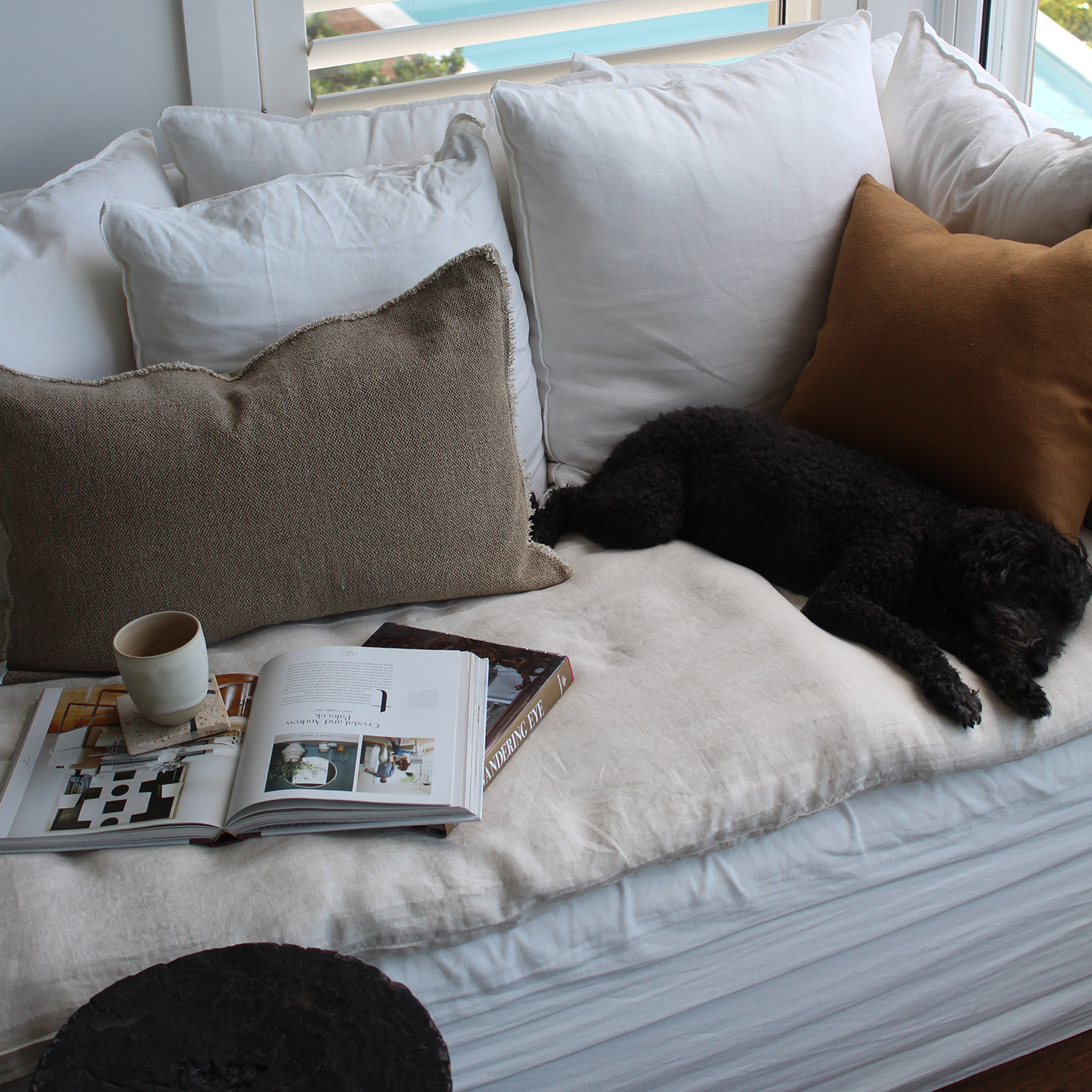Made from 100% linen, finished with a zipper closure and machine washable, the French Signature Sofa Topper collection is the ultimate hybrid product – of comfort, style and protection – for your home!