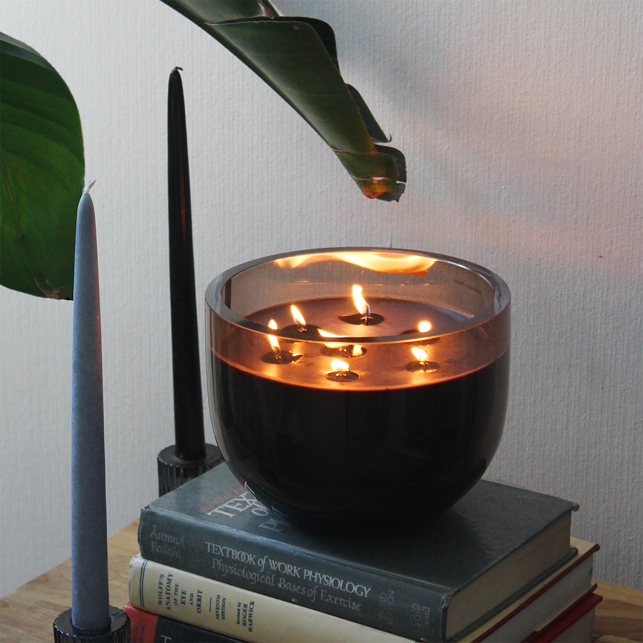 Hand poured in Sydney and set within a hand-blown Lustre Black glass vessel from Poland, the tinted finish softens and deepens the candlelight, creating a more intimate, atmospheric glow. A true statement piece; luxurious, moody and quietly commanding in both presence and mood.