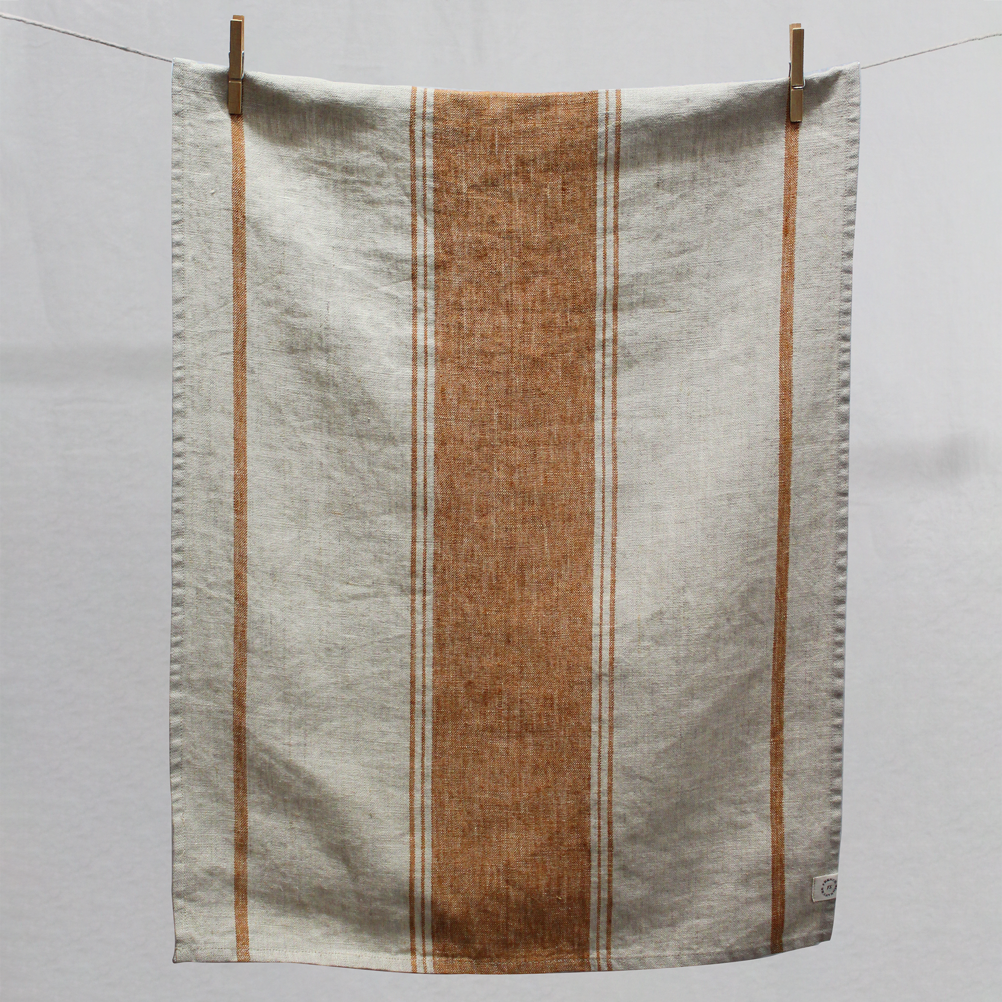 Bring a little touch of French style into your kitchen with the Louis Tea Towel from French Signature. Featuring a classic striped pattern, the Louis Tea Towel are a pared back design offering, focusing on the rustic, effortless aspect of French style which is emphasised by the use of a natural linen base tone with the striped accents being one of the following neutrals; tabac, khaki or granite. The neutral tones mixed with the subtle pattern makes styling with the Louis Tea Towel a breeze.