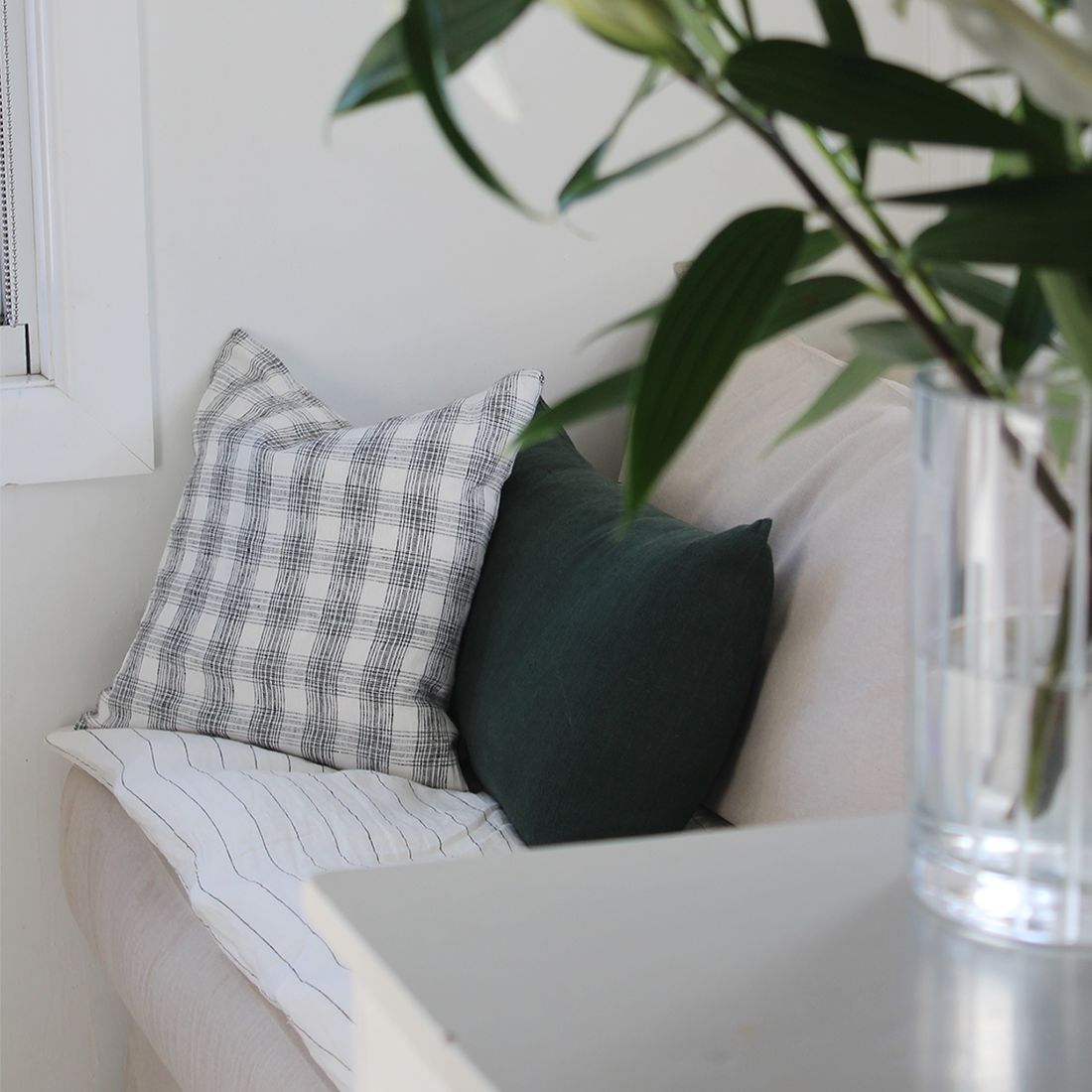 Available in two versatile colourways—white with black stripes or black with white stripes—the Monza Linen Cushion adds texture, contrast, and charm to sofas, beds, or reading nooks.