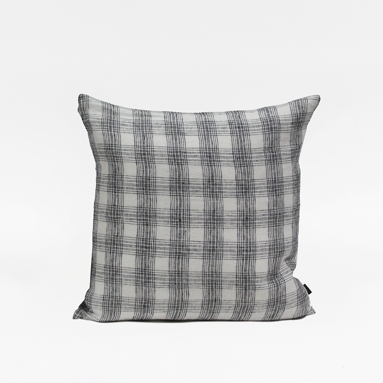 Bring refined European style to your living space with the Monza Linen Cushion. Crafted from 100% stonewashed linen, this cushion features a crisp black or white base, accented by reverse-coloured stripes that mimic a subtle plaid pattern. The result is a clean, understated aesthetic that complements both modern and classic interiors with ease.