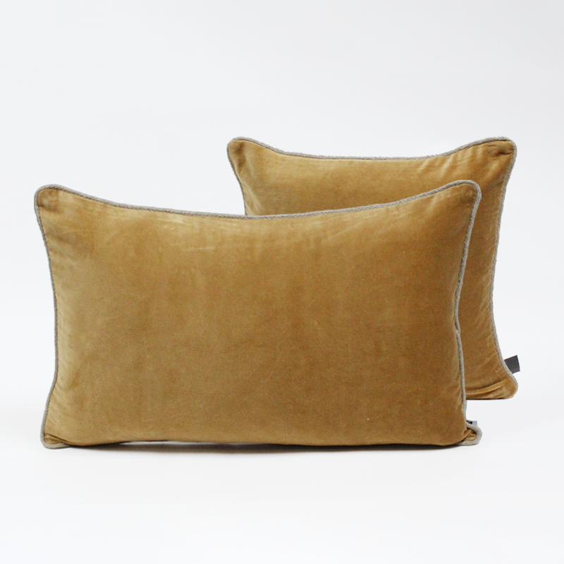Elevate your interior with the refined softness of the New Delhi cushion by Haomy. Crafted from 100% cotton velvet and finished with a contrasting linen, bourdon edge, this cushion blends timeless elegance with modern comfort. The bourdon finish, a decorative corded edging not only adds a subtle yet sophisticated visual contrast but also reinforces the cushion’s shape, giving it both structure and style. This refined detail frames the plush velvet beautifully, making the New Delhi cushion an effortless statement piece in any interior.