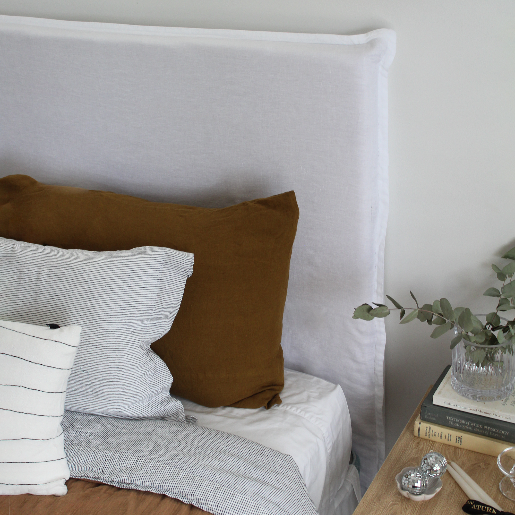 Complement your bedding with the Linen Bed Head from Haomy, France. The free standing bed head features a 100% linen slipcover that seamlessly ties into any bedroom style. The wood-foam composition provides a solid frame that won’t warp or flop with the soft cushioning that will make you want to sit up and read before bead. Available in a wide selection of neutral and statement colours select either the King or Queen size to fit your bed size perfectly. Change up the look and feel by switching out the Linen Bed Head Cover for a colour that better suits your changing style.